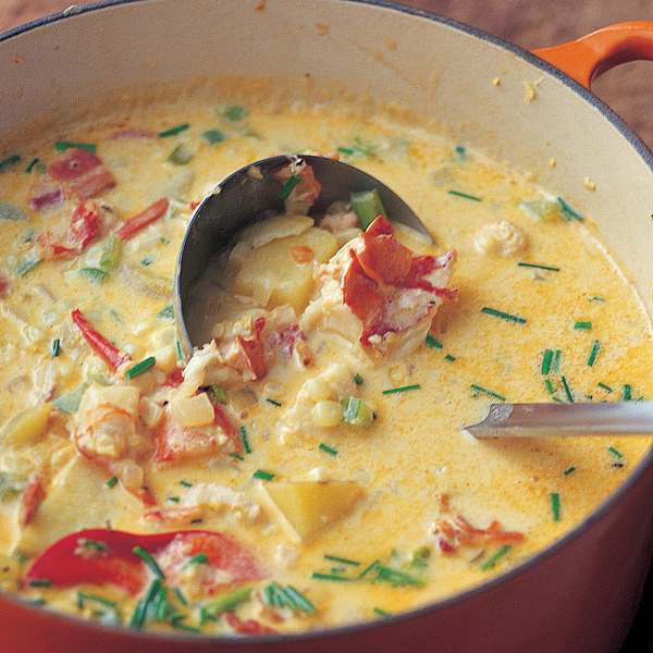 Remove the pot from the heat; stir in the lobster meat and cream, and season to taste with salt and pepper. If you are not serving the chowder within the hour, let it cool a bit, then refrigerate; cover the chowder after it is chilled completely. Otherwise, let it sit at room temperature for up to an hour, allowing the flavors to meld.